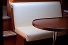 Четвертая модель “Фридома” ярко продемонстрировала, насколько многообразным может быть решение пространства даже в столь ограниченом объеме. Салон стал многоуровневым и вместил в себя три разные функциональные зоны - кают-компанию, обеденную зону и камбуз. “Четверка” раз и навсегда отучила нас полностью доверять бумажным и компьютерным моделям. Все решения мы принимали в процессе натурного моделирования, внутри судна. Мы садились, ложились, делали все возможные движения - все должно было быть под рукой, все должно быть удобно. Отныне все наши судна строятся только так.