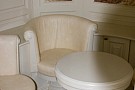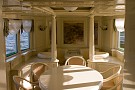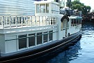 Старое прогулочное судно было переоборудовано в моторную яхту для корпоративного отдыха. Судно было удачно выполнено в стиле гребного пароходика. Кают-компания, очень просторная для такого маленького судна, послужила владельцам и для деловых встреч, и для корпоративных вечеринок. Через несколько лет мы возвратились к этому проекту, наученные опытом, и тогда "Стрелка" заявила о себе во всей красе.